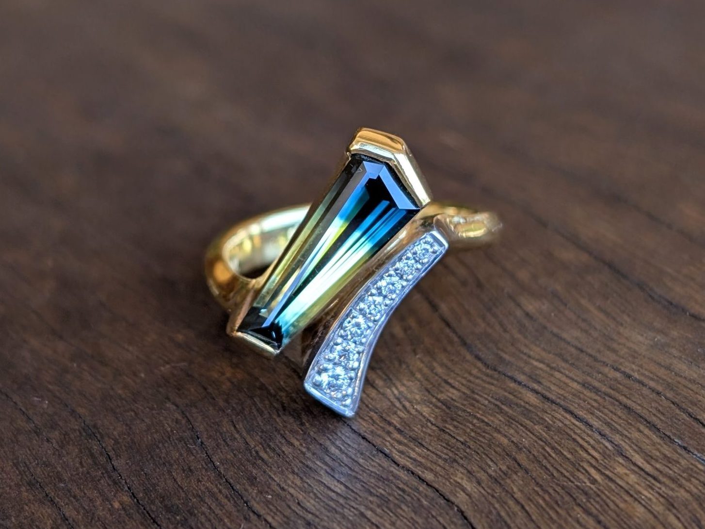 • 1.45ct Blue-Yellow Parti-Colour Sapphire & Diamond Ring #J6924 Size M
